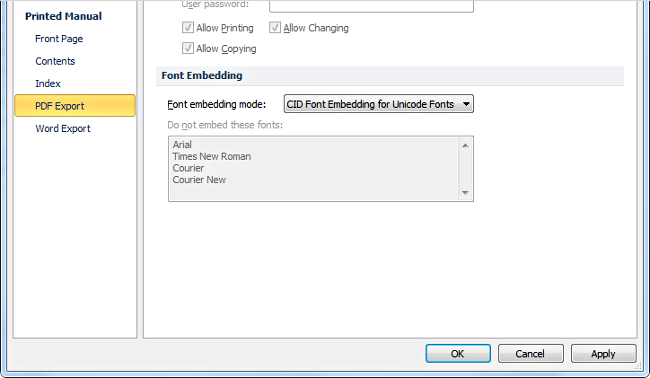 CID Font Embedding Option in PDF Settings