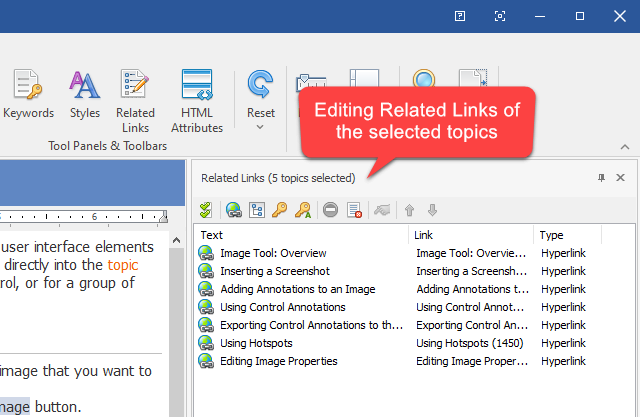 - Now you can define a set of Related Links for associated topics in your help project.